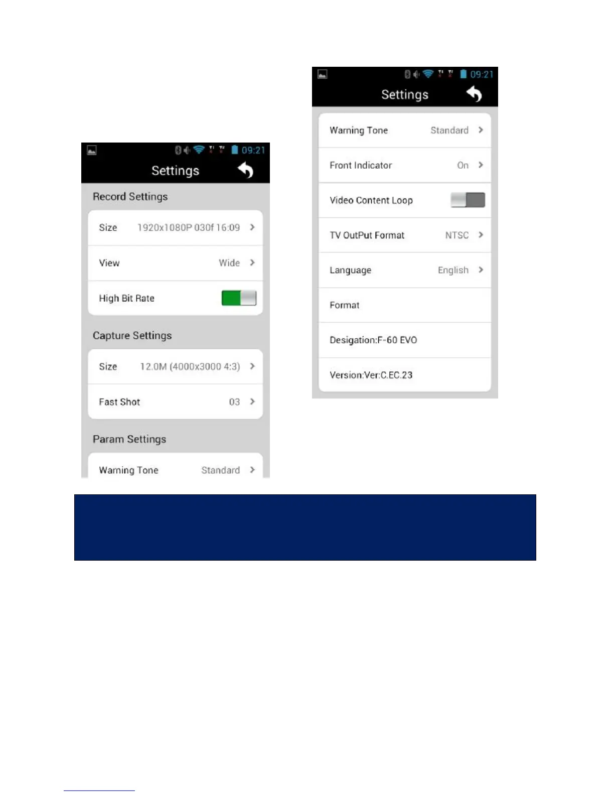 the cam settings menu.