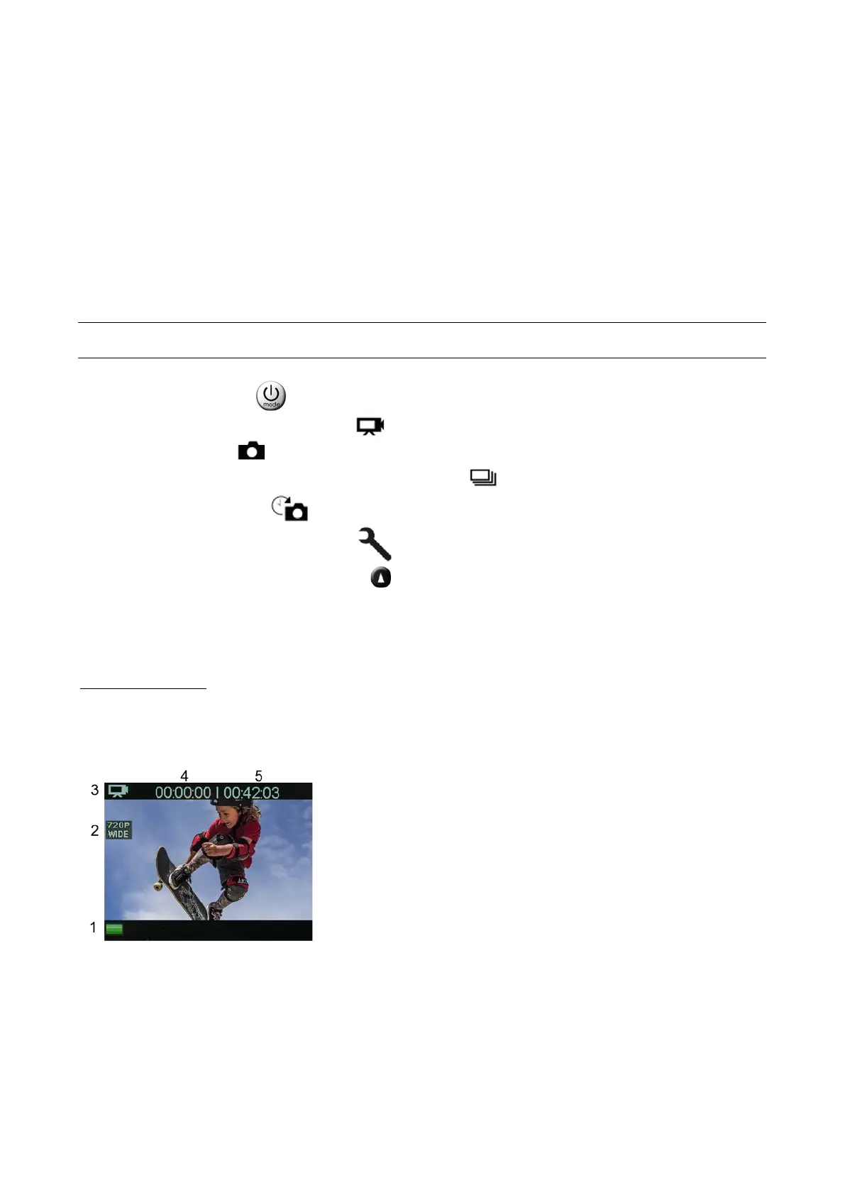 La caméra dispose de 5 modalités d’utilisation immédiate que l’on obtient en appuyant en séquence