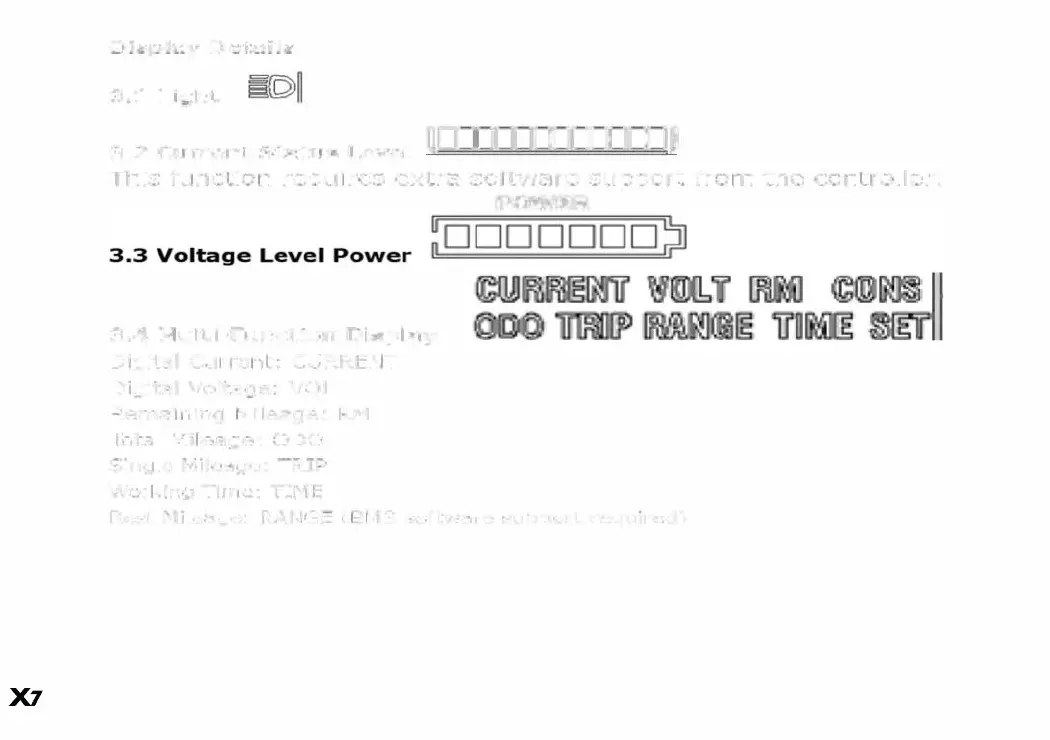 Nilox X7 - Display Details; Light; Voltage Level Power; Multi-Function Display