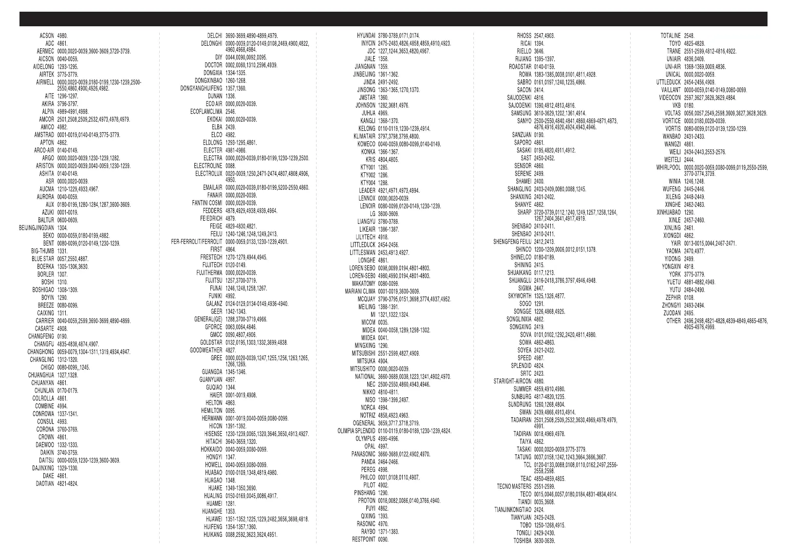 CÓDIGOS POR MARCA / BRAND LIST