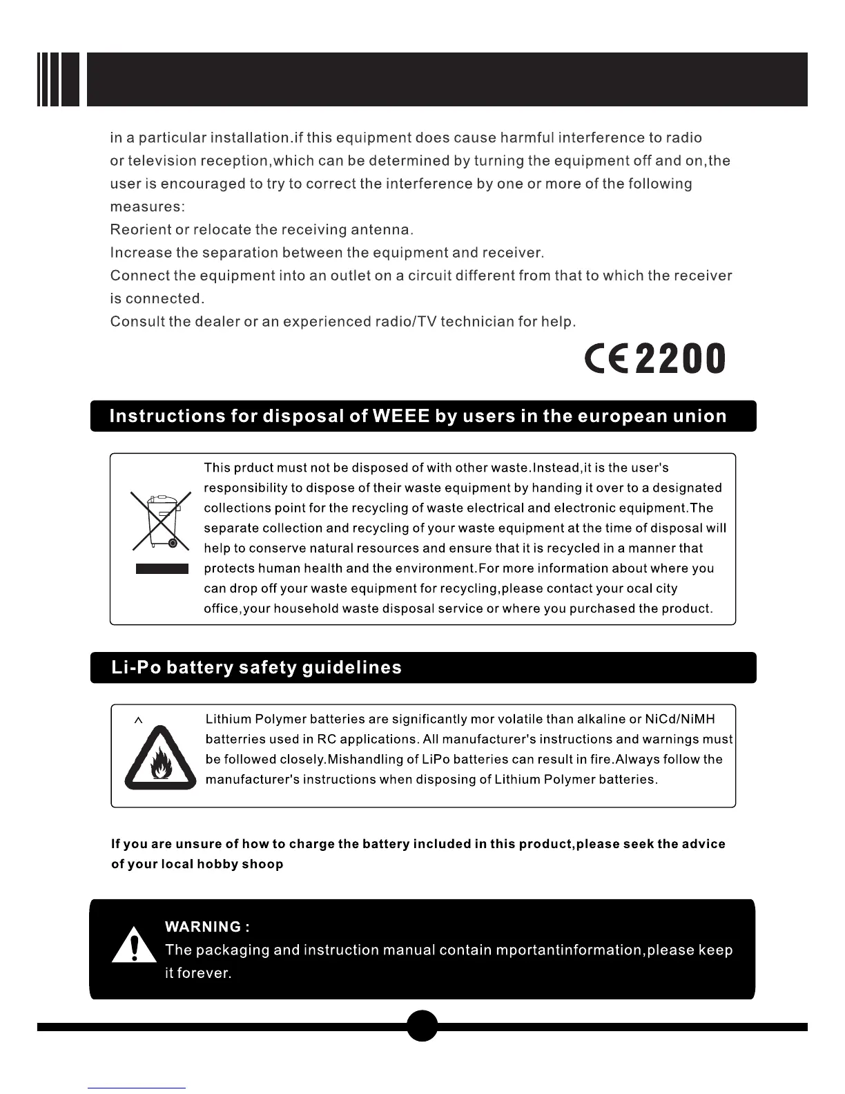 Nine Eagles Galaxy Visitor 7 - Disposal and Li-Po Battery Safety Guidelines