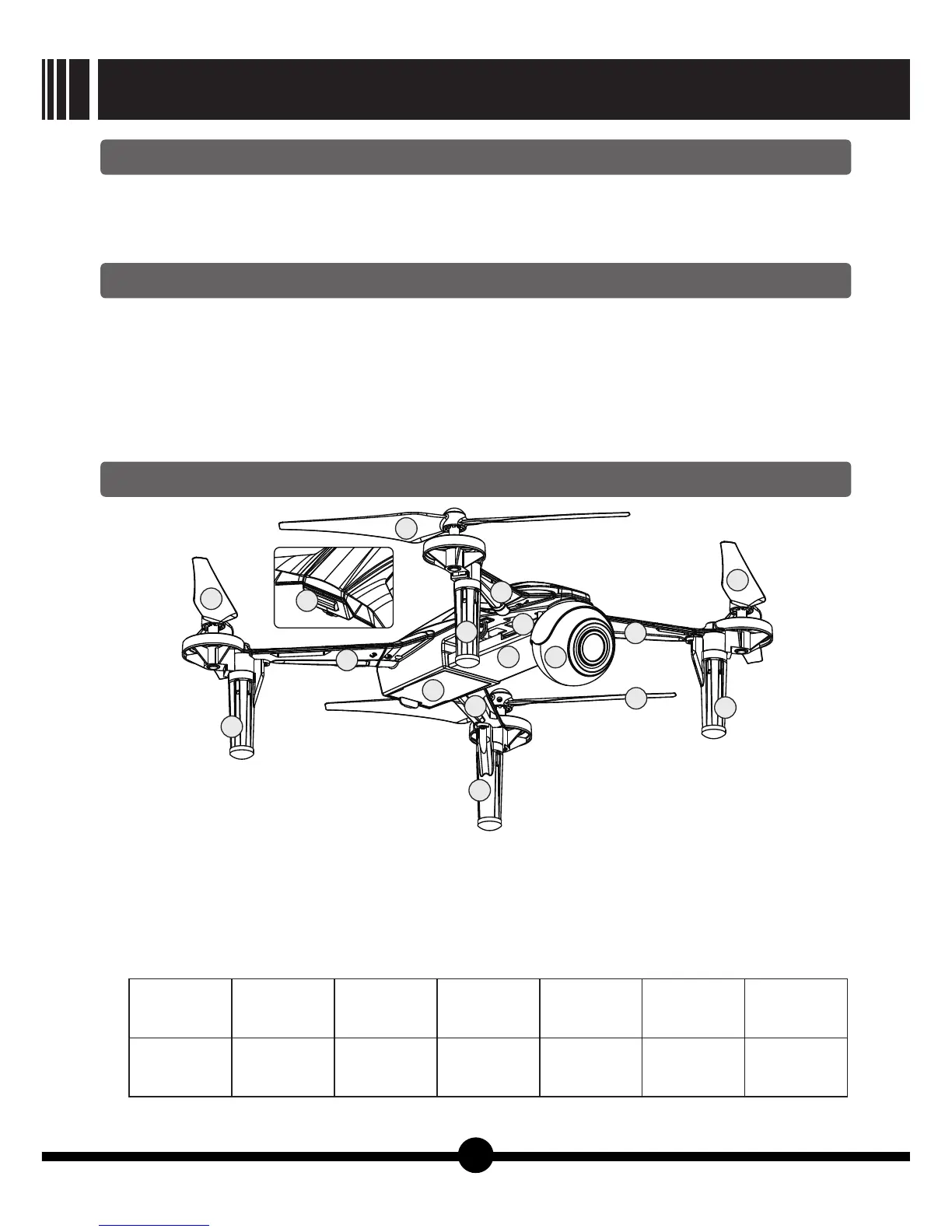 5.Quadcopter's main parts and indicator lights status instruction: