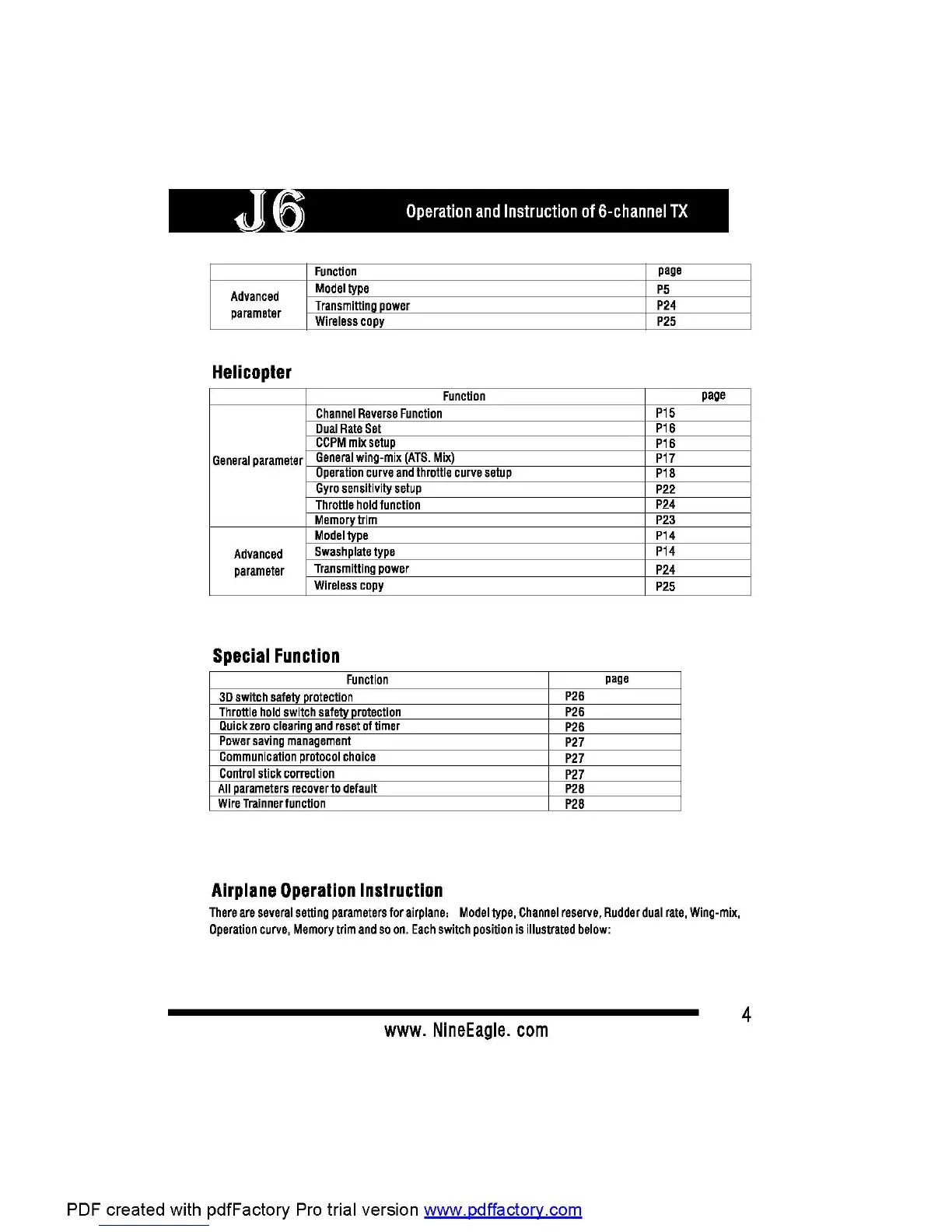 Nine Eagles J6 - Helicopter Advanced Settings; CCPM Mix Setup; Dual Rate Function for Helicopters; Curves Function for Helicopters