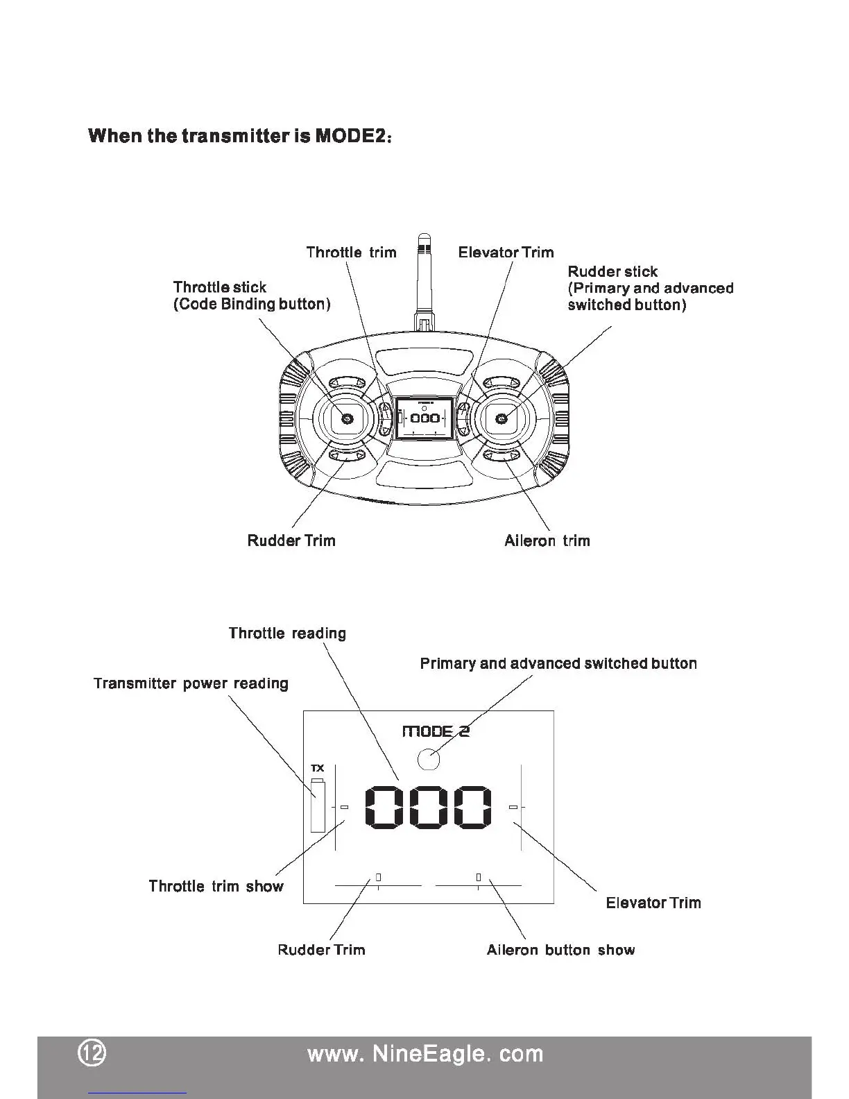 Nine Eagles SOLO PRO V - Transmitter Controls for MODE 2