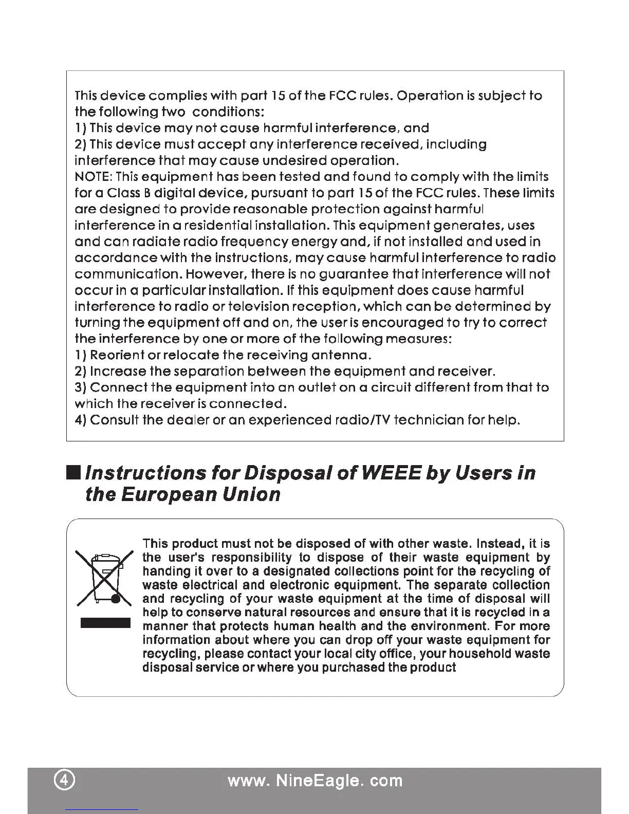 Nine Eagles SOLO PRO V - Instructions for Disposal of WEEE by Users in the European Union