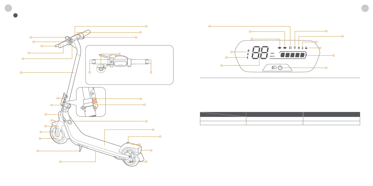Velocímetro: Muestra la velocidad actual del patinete, así como los códigos de error.