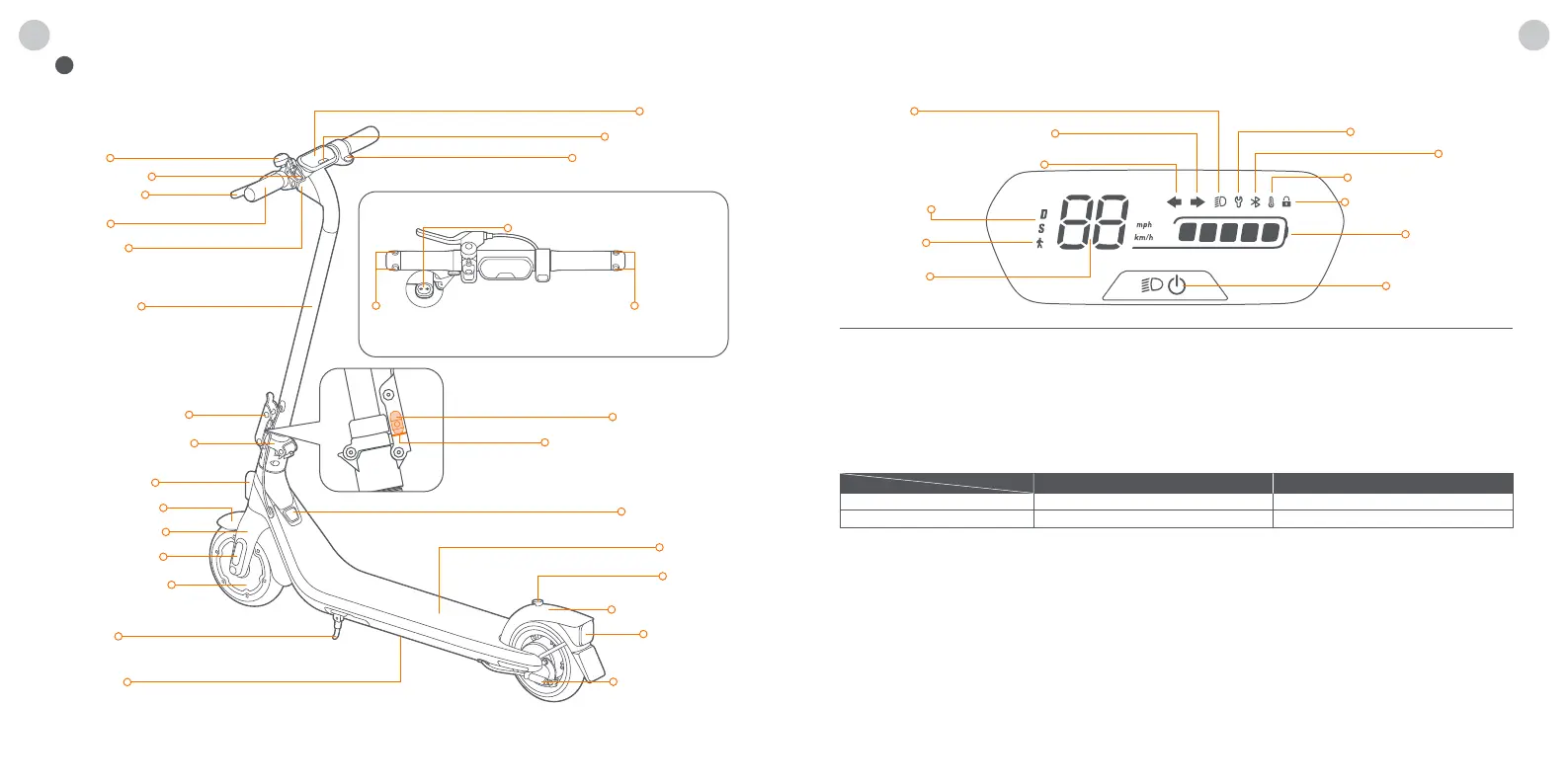 Ein-/Aus-Schalter: Drücken Sie den Schalter, um den Roller einzuschalten; halten Sie den Schalter 2 Sekunden lang gedrückt, um ihn