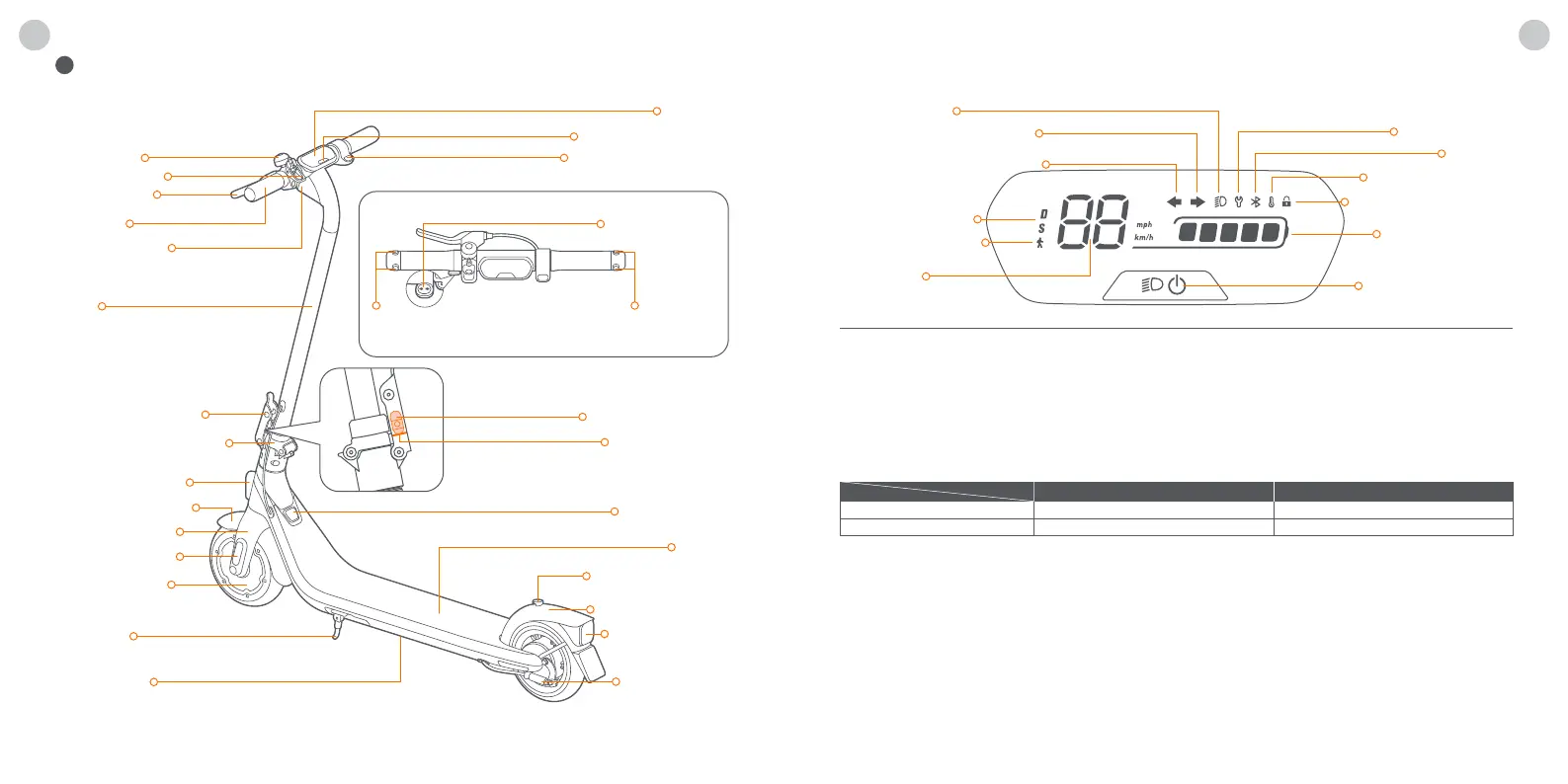 Tachimetro: visualizza la velocità attuale dello scooter e i codici di errore.