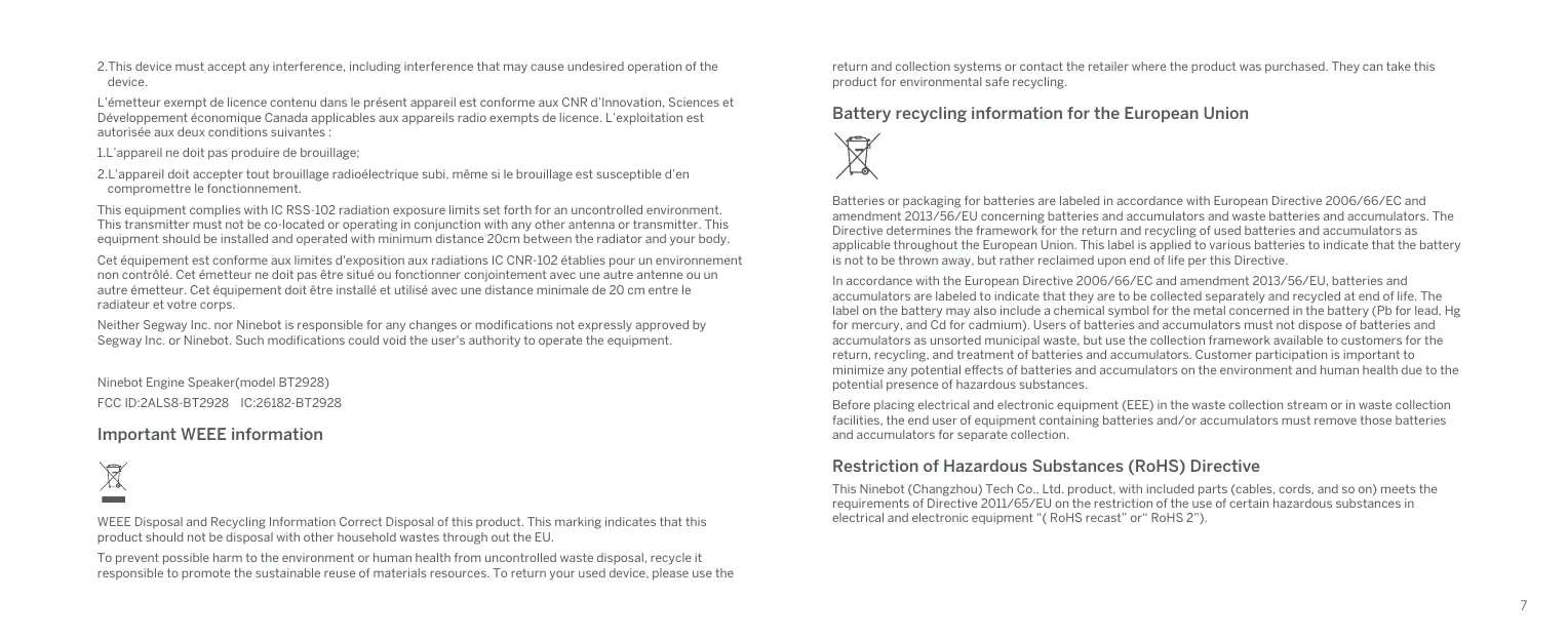 Neither Segway Inc. nor Ninebot is responsible for any changes or modifications not expressly approved by