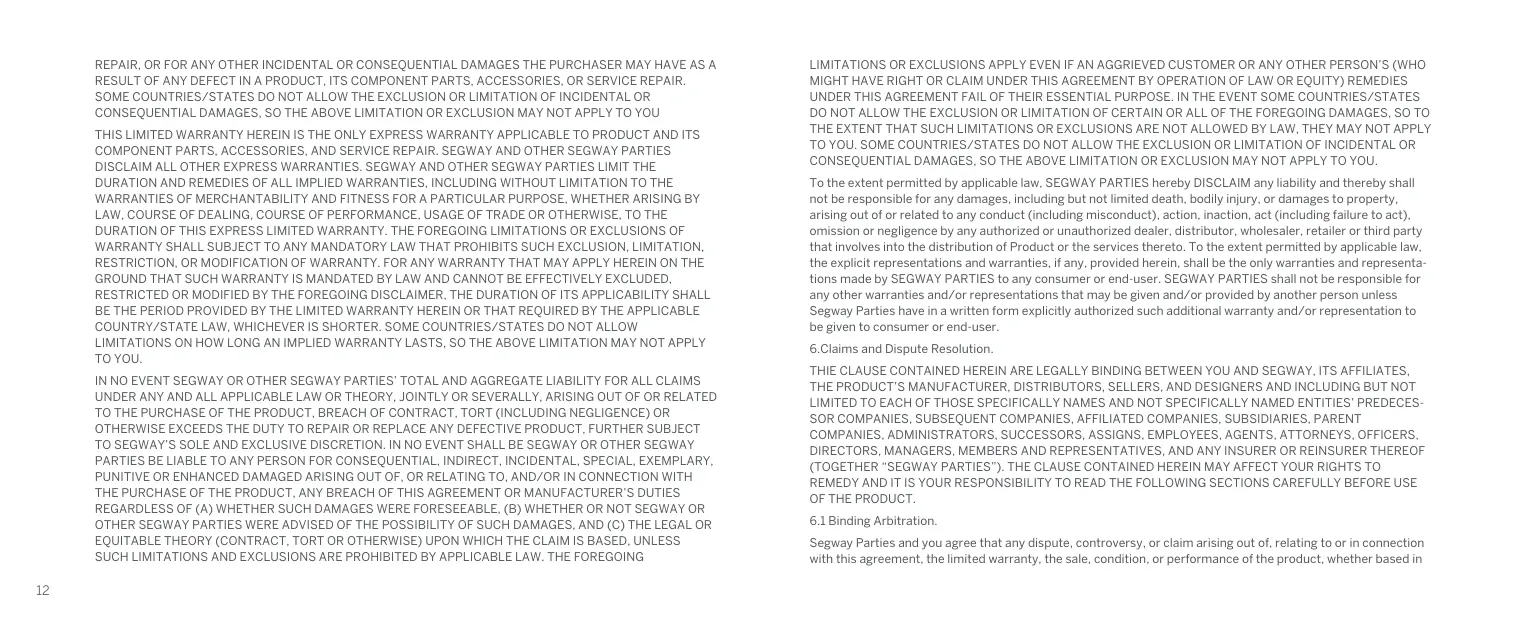 DISCLAIM ALL OTHER EXPRESS WARRANTIES. SEGWAY AND OTHER SEGWAY PARTIES LIMIT THE