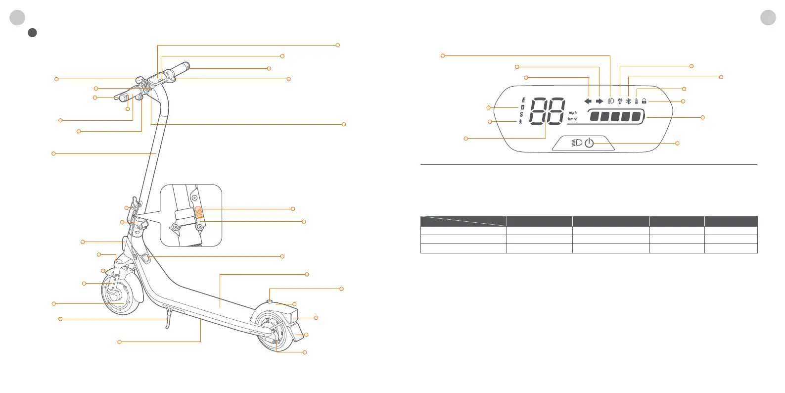 scooter estiver ligada, pressione o botão para ligar/desligar o farol e a luz traseira; e pressione duas vezes para alternar entre os modos de velocidade.