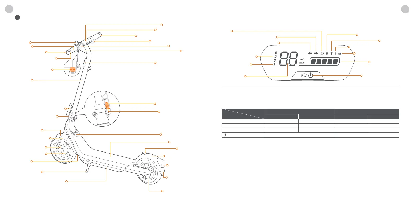 patinete esté encendido, presione el botón de encendido para encender/apagar el faro y la luz trasera, y presione dos veces para cambiar entre los
