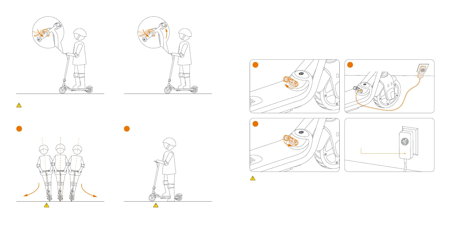 ● Keep away from flammable and explosive materials when charging, and place the scooter in a place out of the