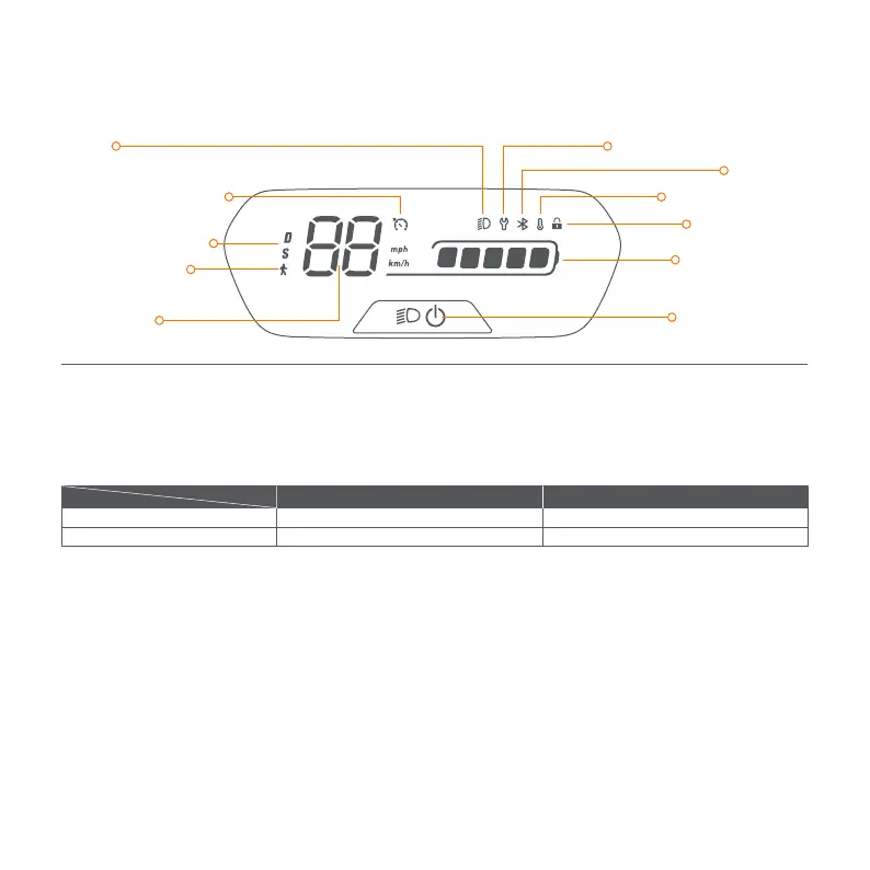 Спидометр: отображается текущая скорость скутера, а также коды ошибок.