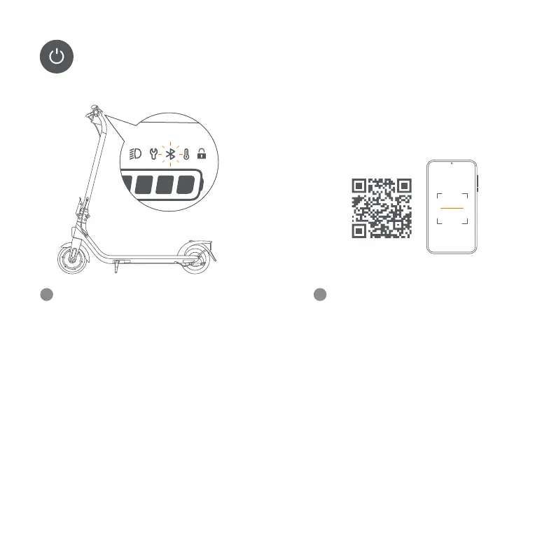 啟動 KickScooter 的電源。* 停用的 KickScooter 在啟動時