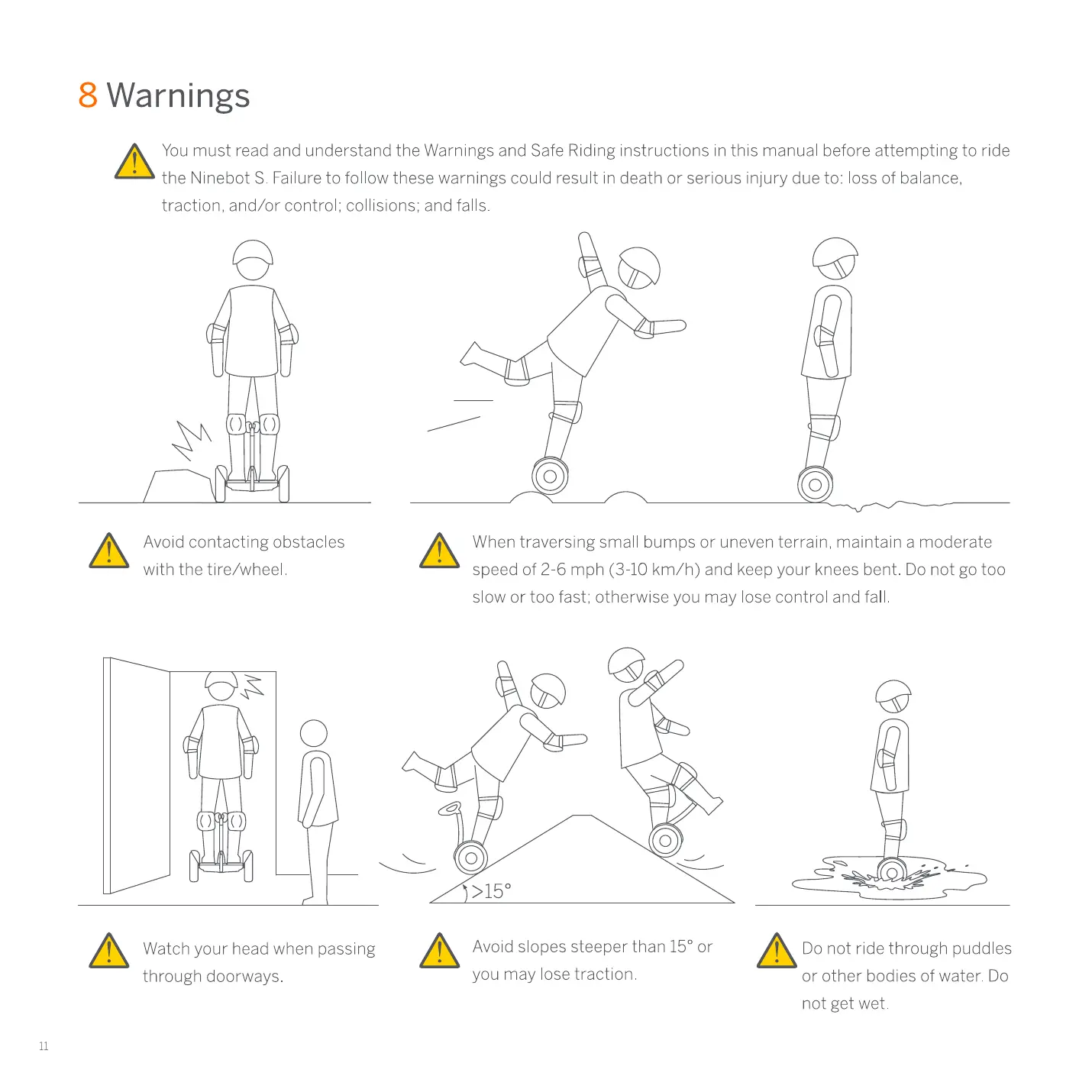 the Ninebot S Fai ure to follow these warnings could result in death or serious injury due to: loss of balance,