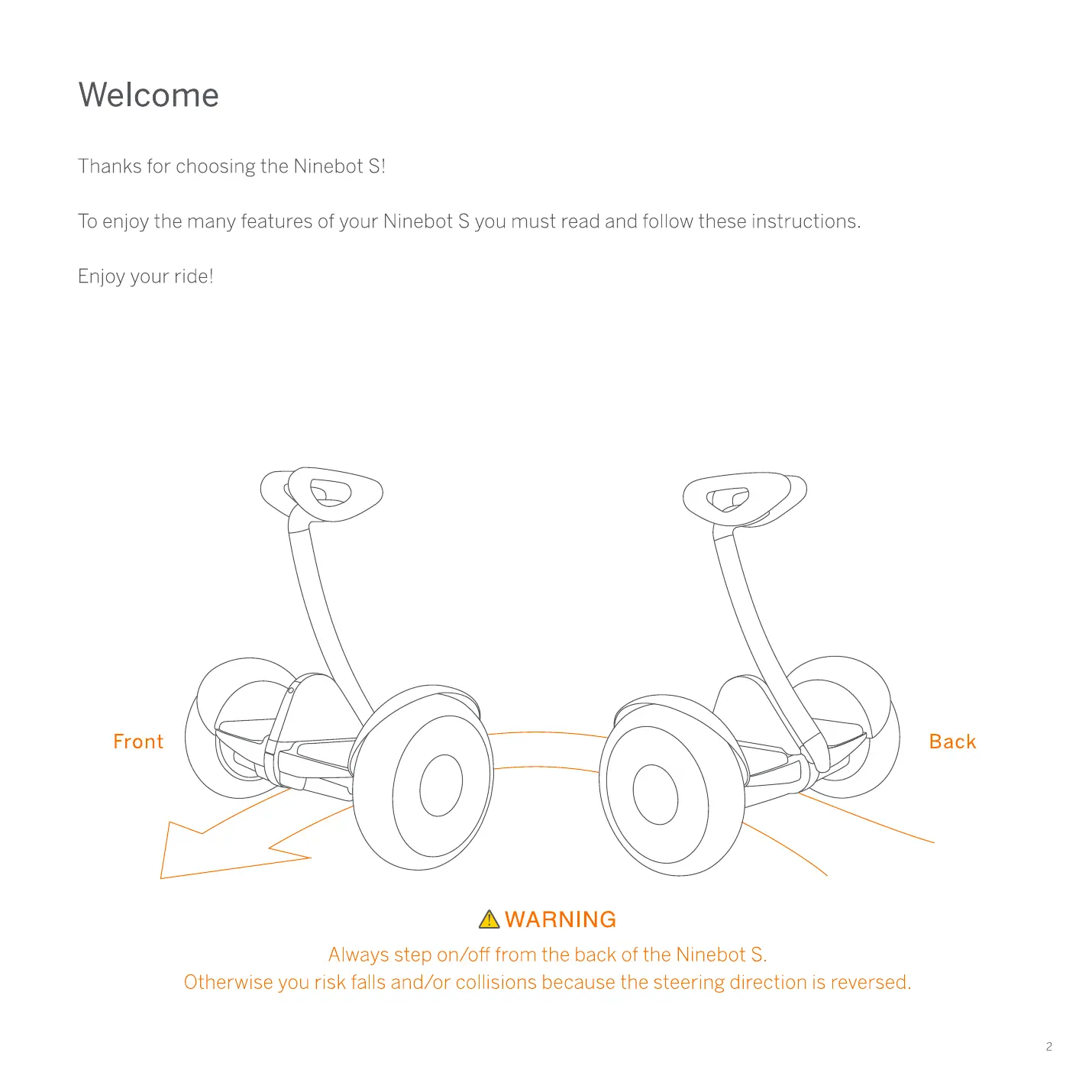 To enjoy the many features of your Ninebot S you must read and follow these instructions