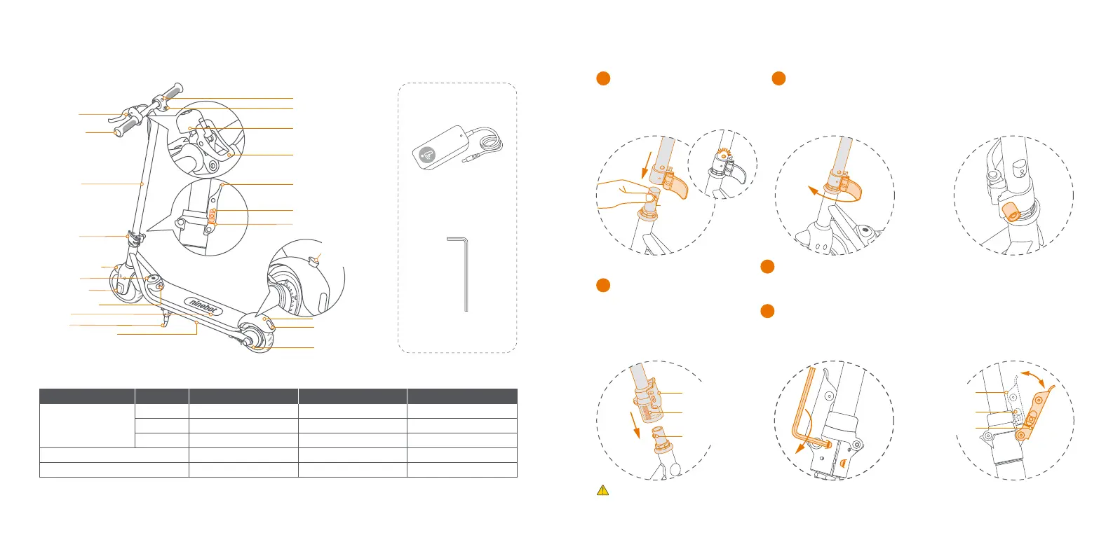 Przed złożeniem hulajnogi wyłącz ją. Przewodu hamulcowego nie należy owijać wokół kolumny