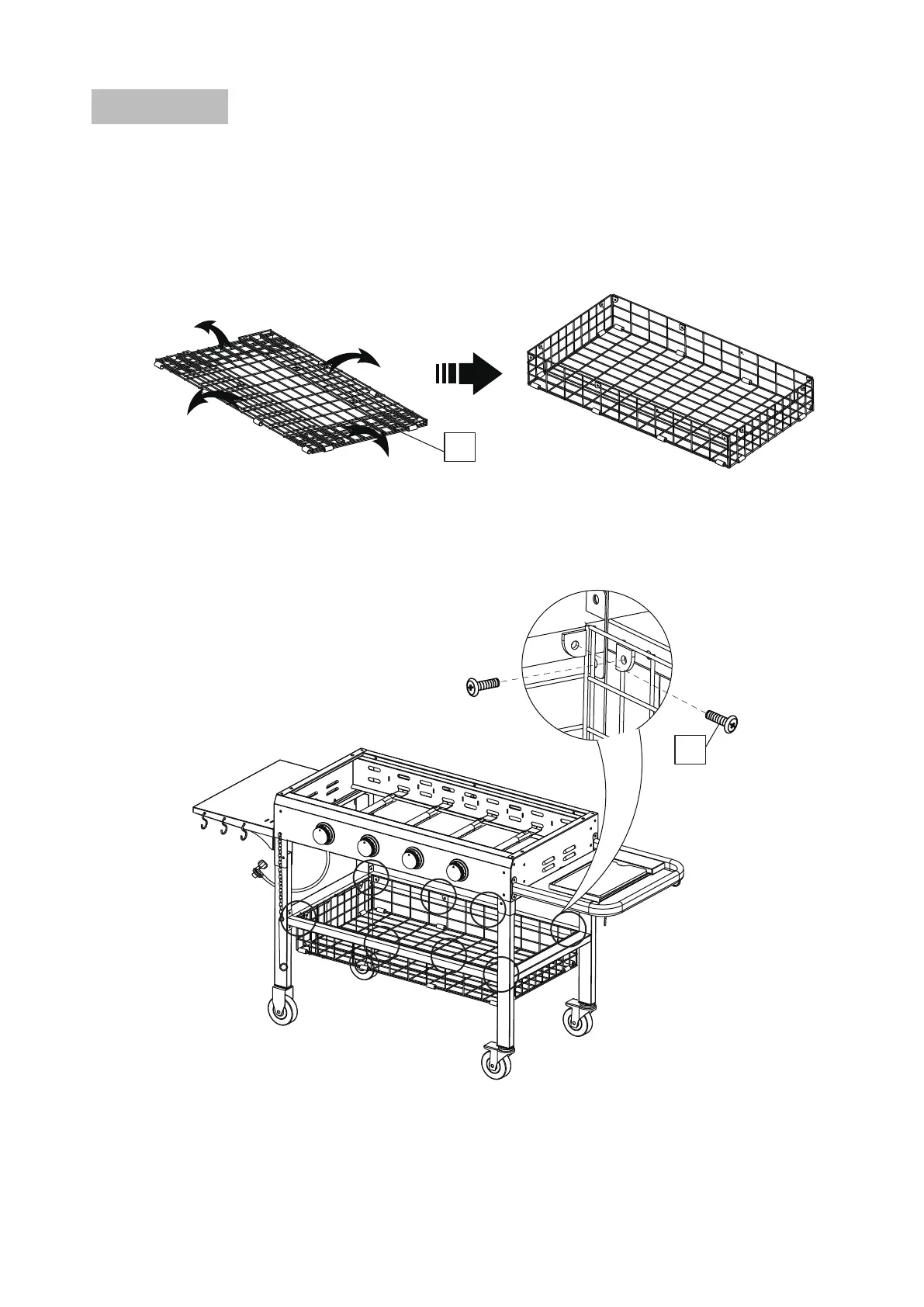 Unfold the Metal basket(#J) and install it correctly with 12 Screws(#U) as the diagram shows.