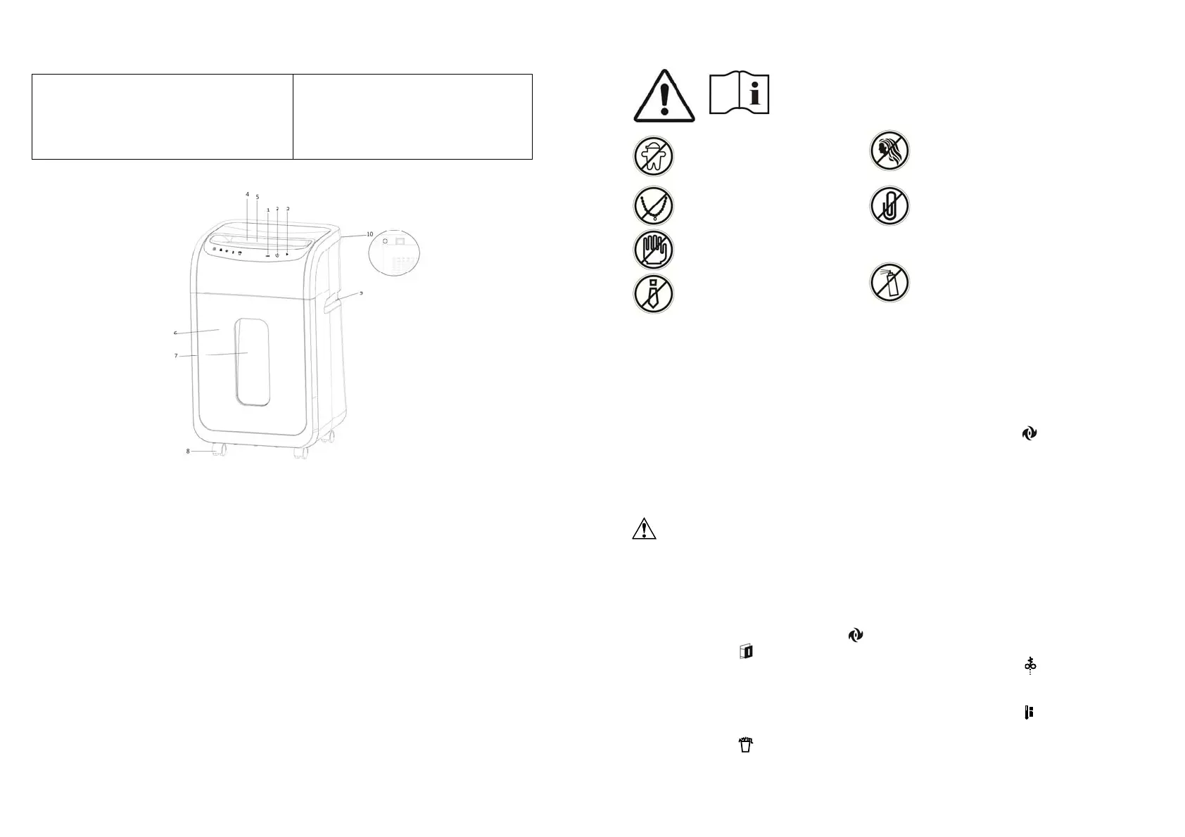 6. If the shredder is overload, it will automatically shut down and the Red LED light ( ) will illuminate