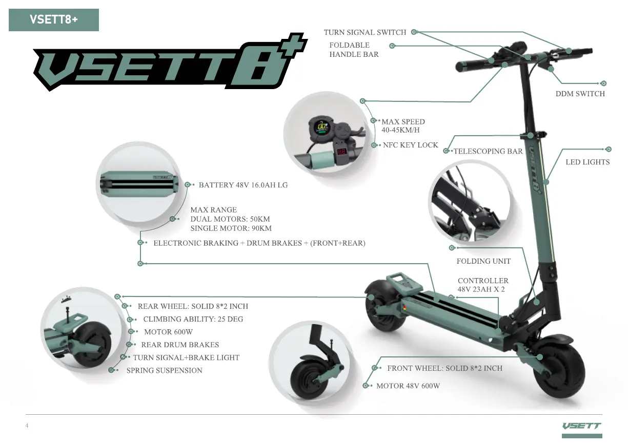 Ningbo VSETT 9 - VSETT8+ Electric Scooter Features; VSETT8+ Technical Specifications