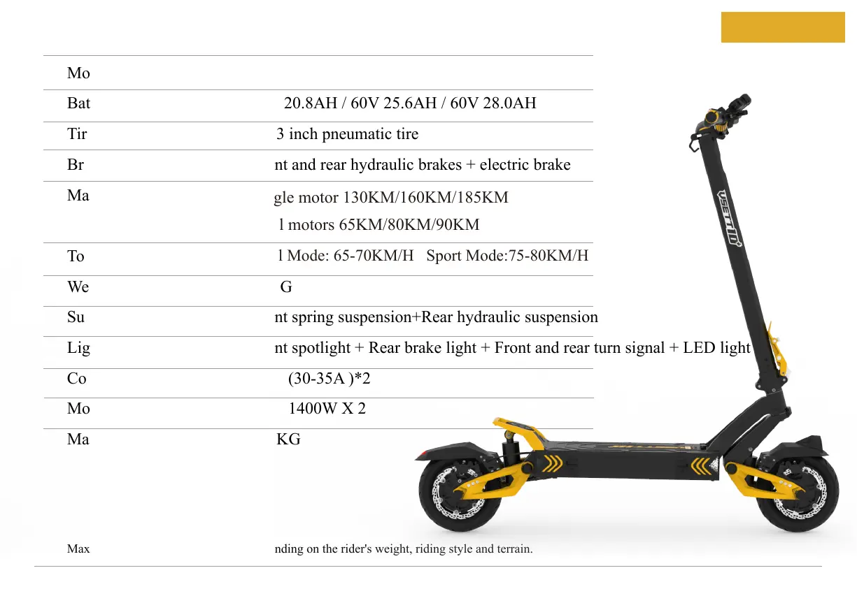 Maximum load and speed may vary depending on the rider's weight, riding style and terrain.