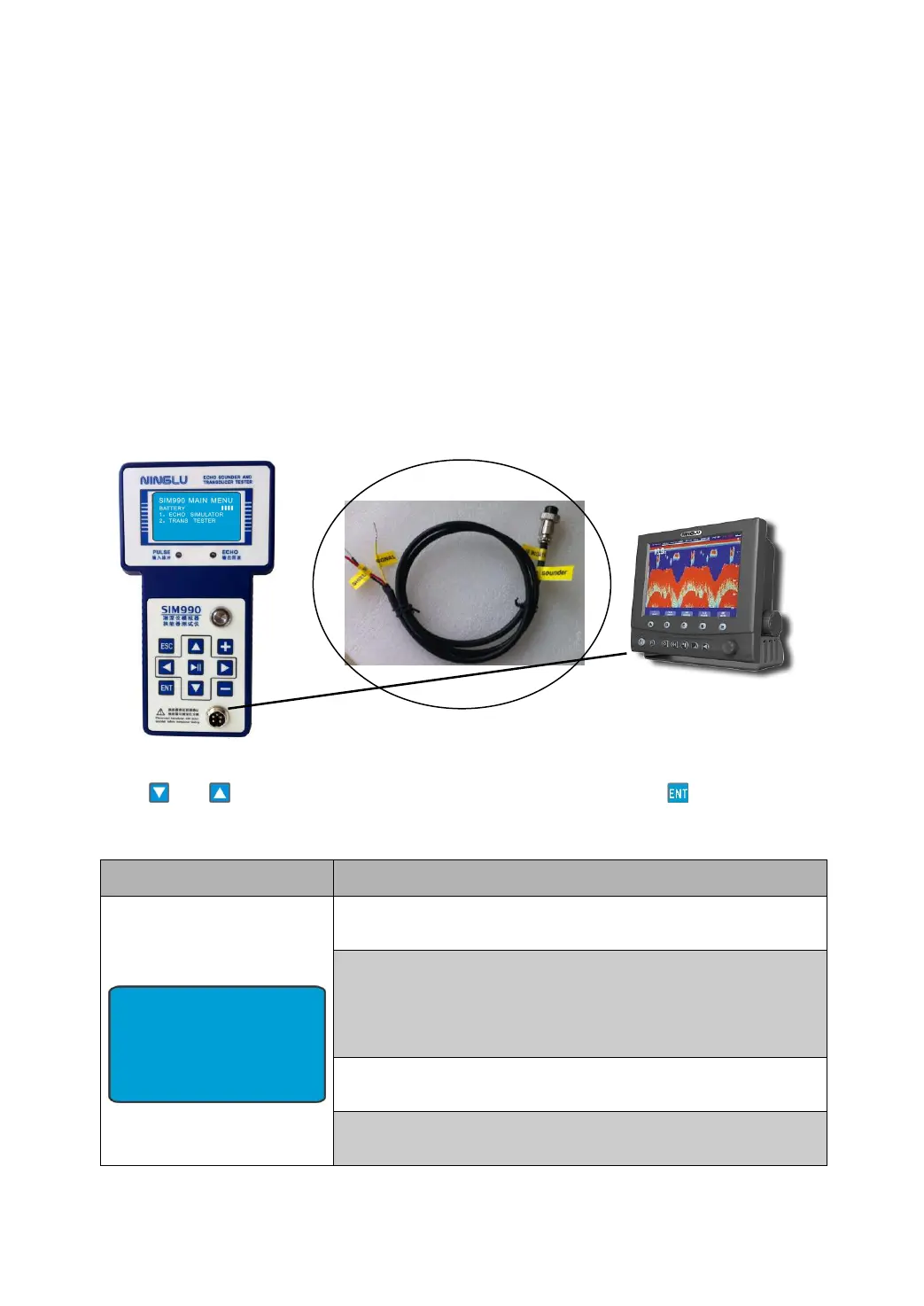 Connect SIM990 to the echo sounder’s transducer input/output interface. The