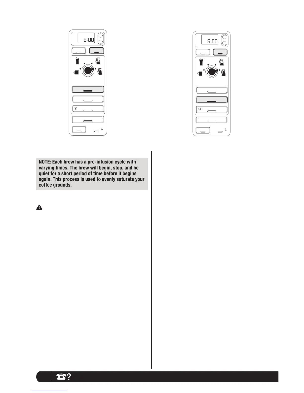 NOTE: Each brew has a pre-infusion cycle with