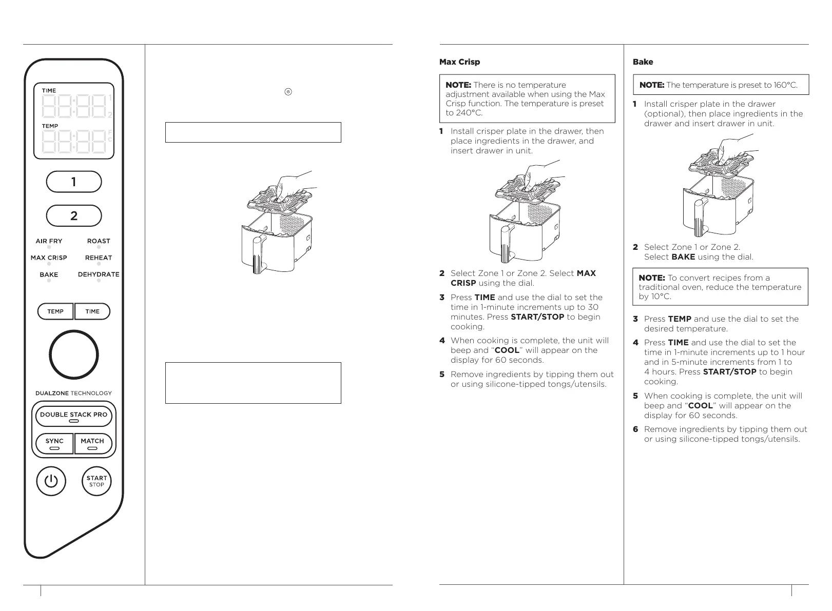 2 Select Zone 1 or Zone 2. Select AIR FRY using the
