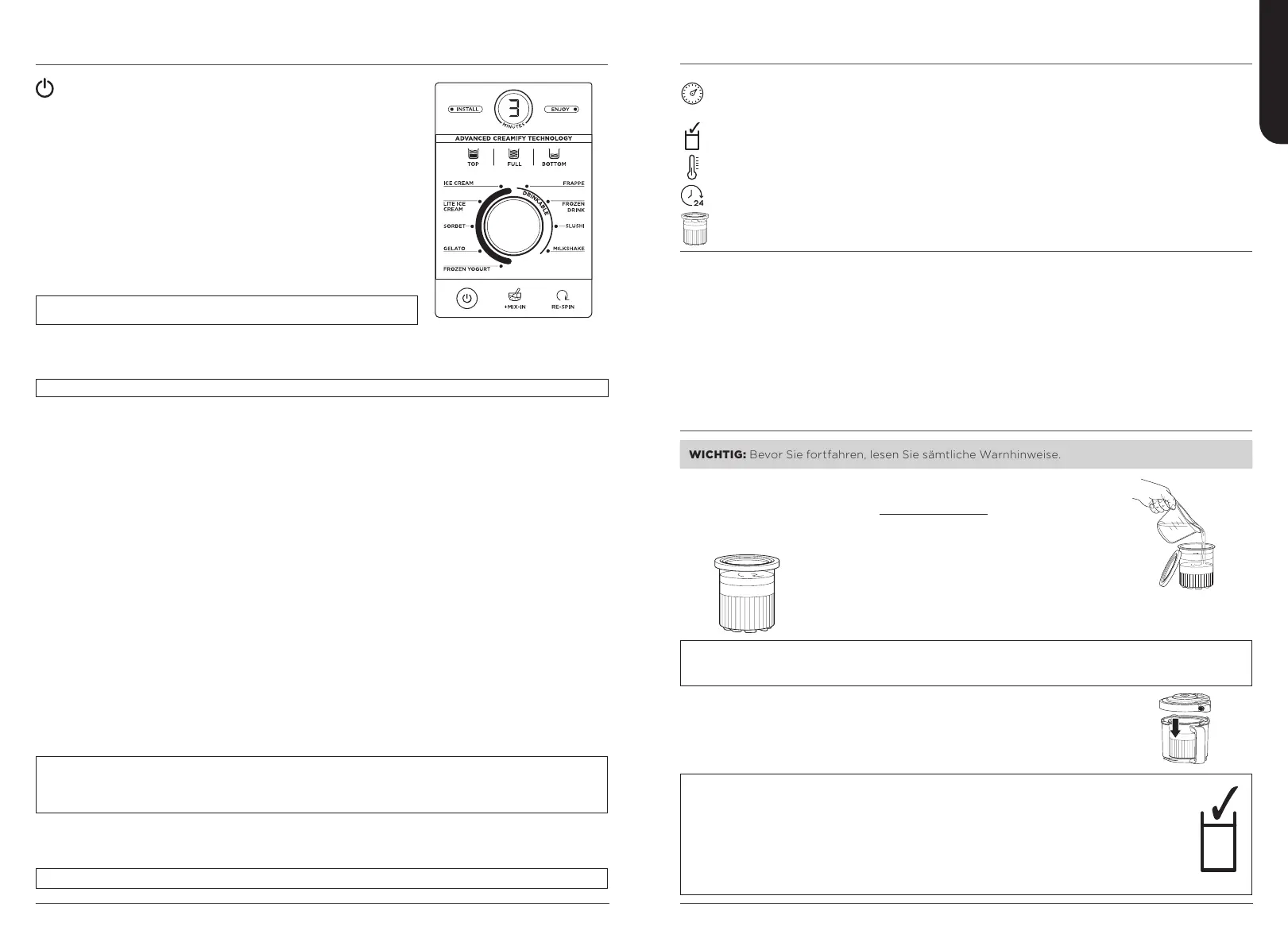 Behälter wieder einfrieren. Wenn der Deluxe-Behälter ungleichmäßig gefroren ist, stellen Sie