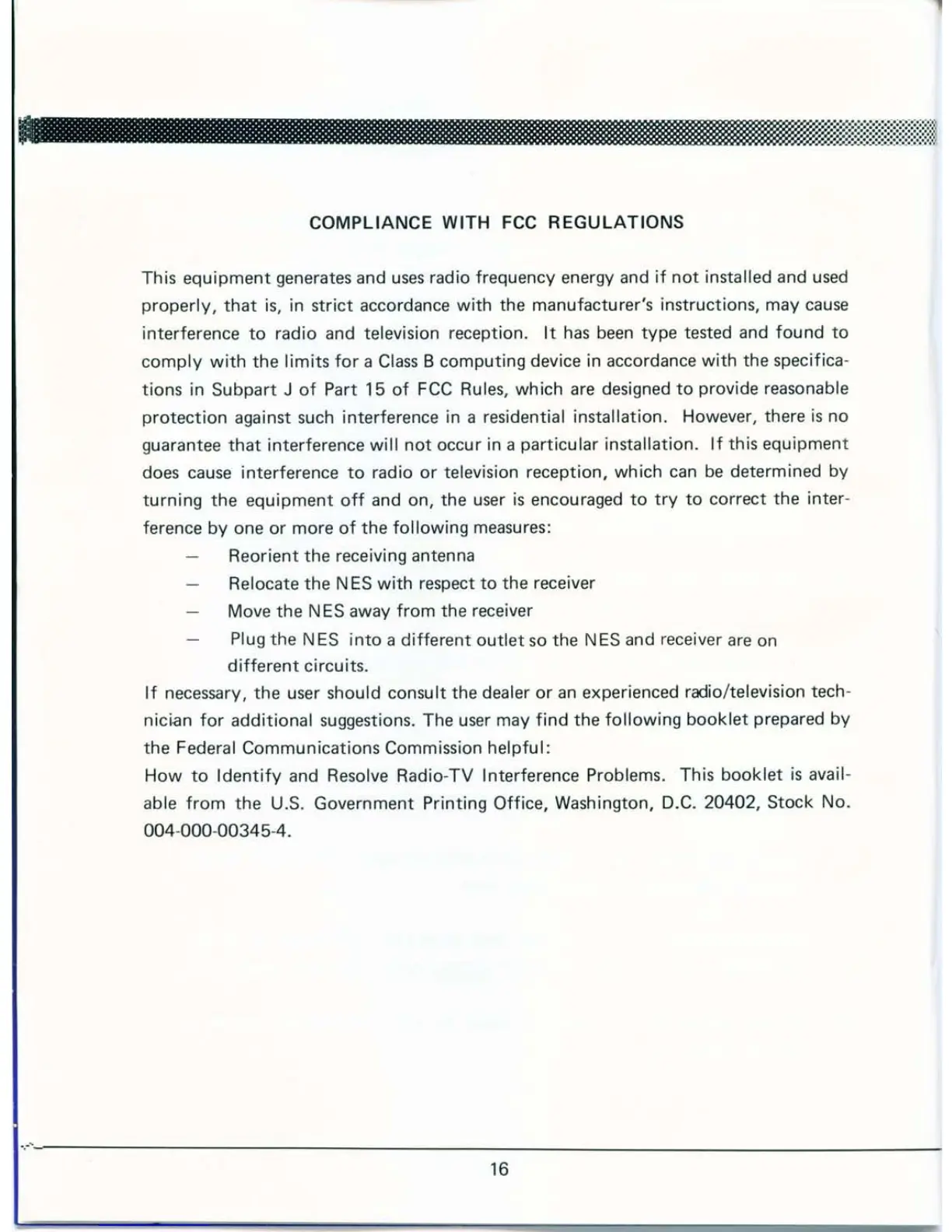 Nintendo Control Deck NES - Compliance with FCC Regulations