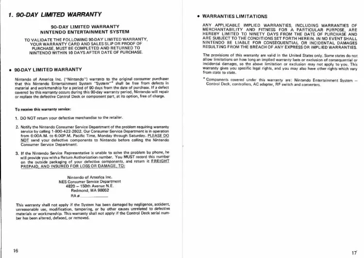 Nintendo CONTROL DECK - Warranty and Service Information; Warranty Service Procedure; Warranty Limitations and Consumer Rights
