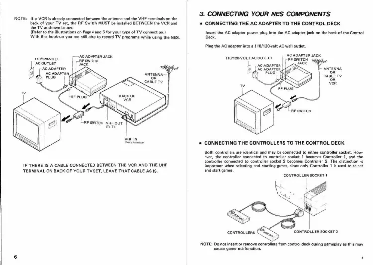 Nintendo CONTROL DECK - NES System Component Connections; AC Adapter and Controller Hookup