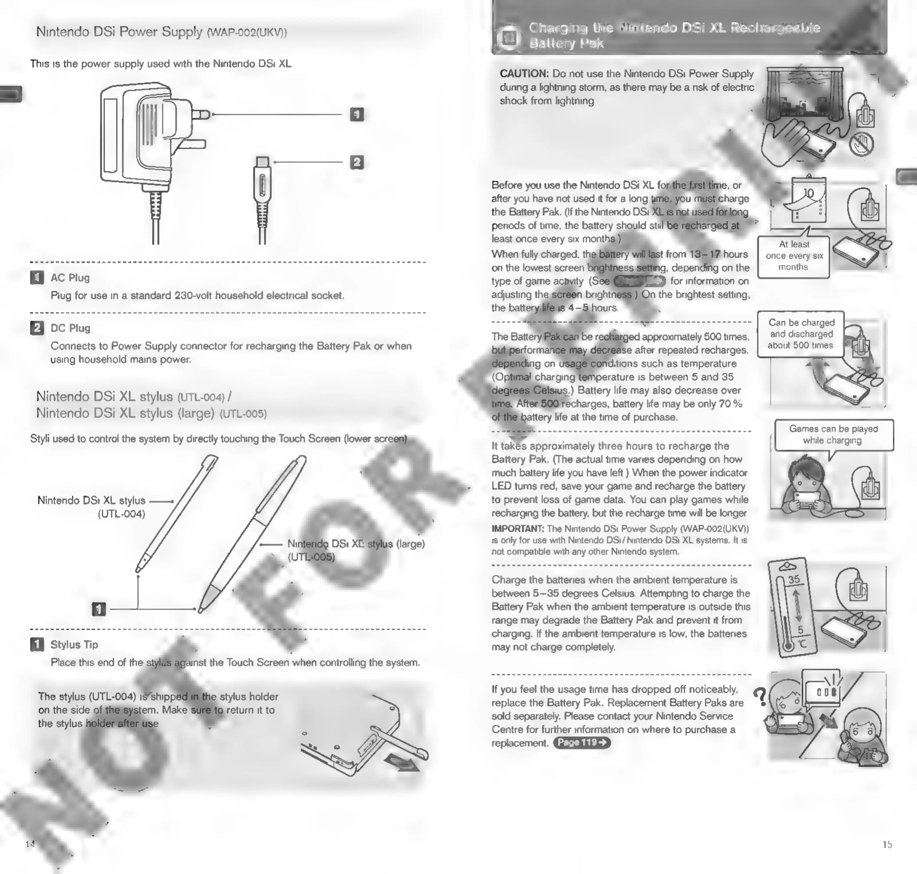 Nintendo DSI - Power Supply and Battery Charging; Charging the Rechargeable Battery Pak