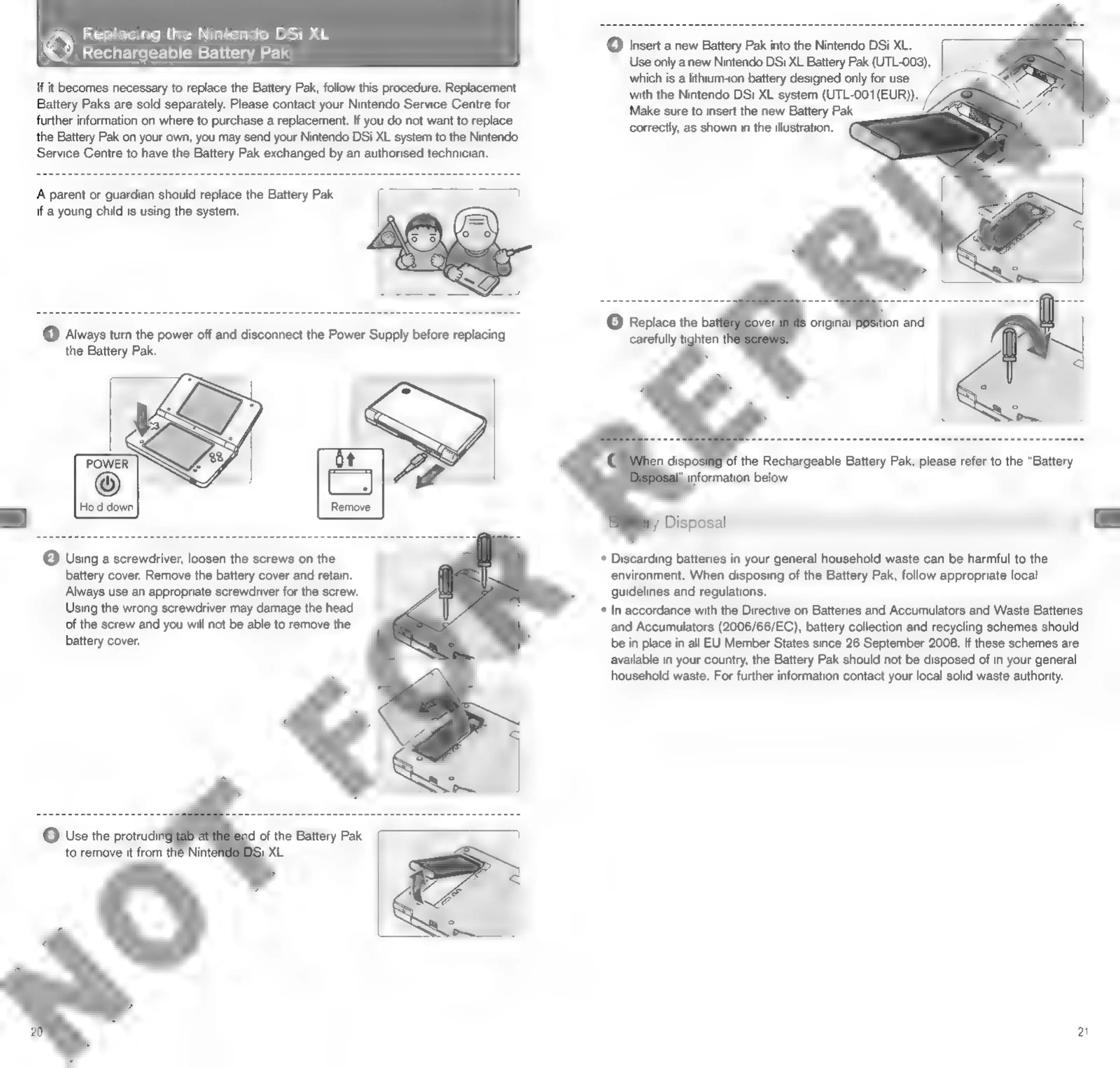 Nintendo DSI - Replacing the Battery Pak; Battery Disposal Guidelines