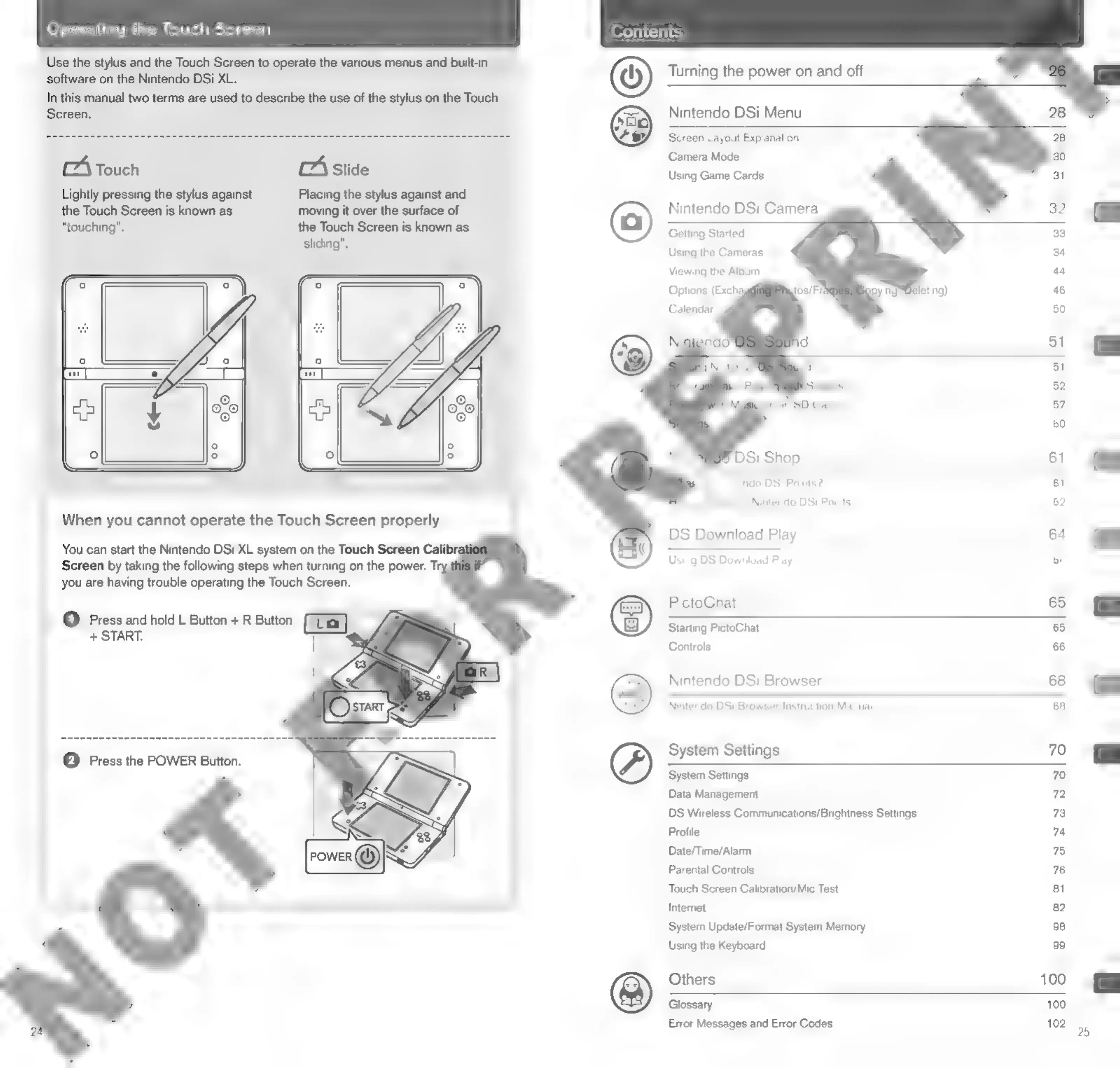 Nintendo DSI - Operating the Touch Screen; Touch Screen Calibration