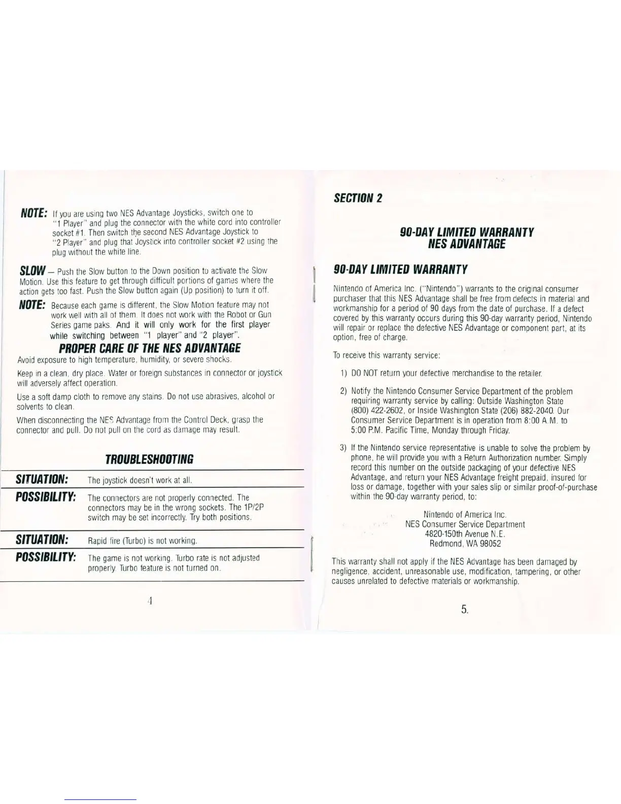 Nintendo NES Advantage - Proper Care of the NES Advantage; NES Advantage Troubleshooting