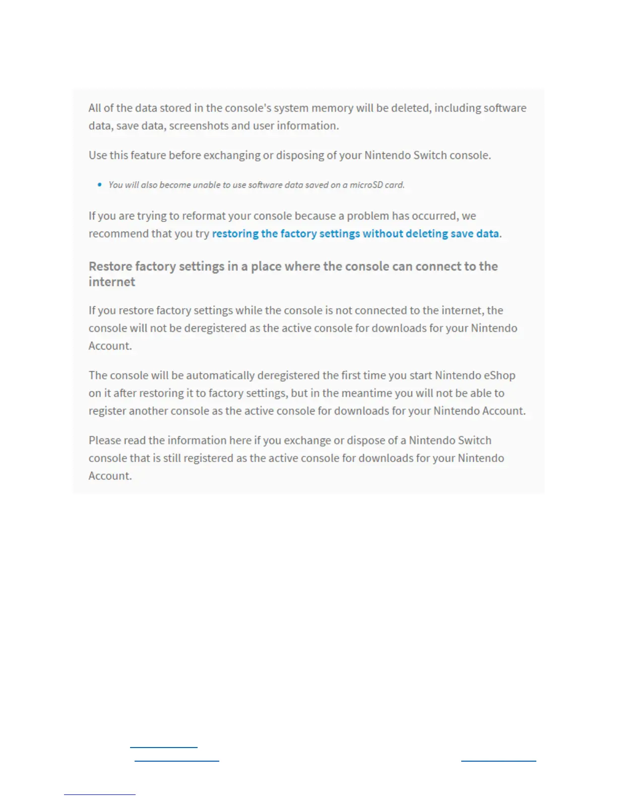 Nintendo Switch - Restoring the Console to Factory Settings