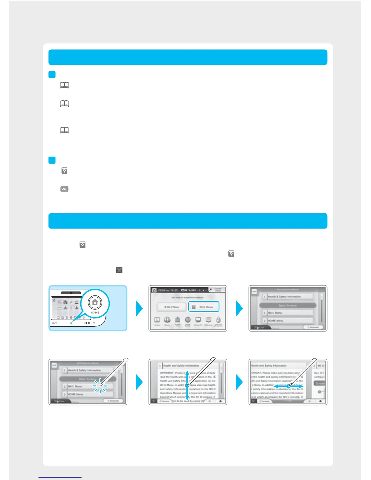 · If you press the HOME Button while using a Wii U software title, touching will display the electronic manual for