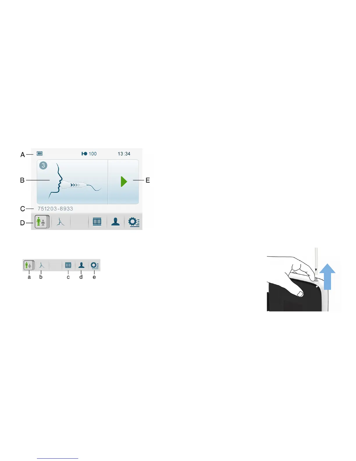 (A) Status bar, (B) Instructive demonstration, (C) Patient ID, (D) Main menu,
