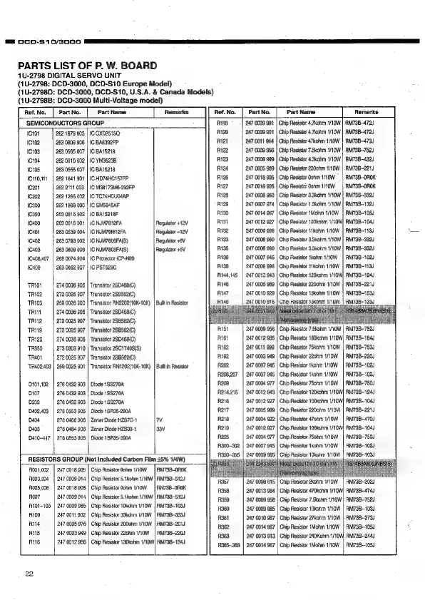 Nippon DENON DCD-S10 - Parts List of P.W. Board