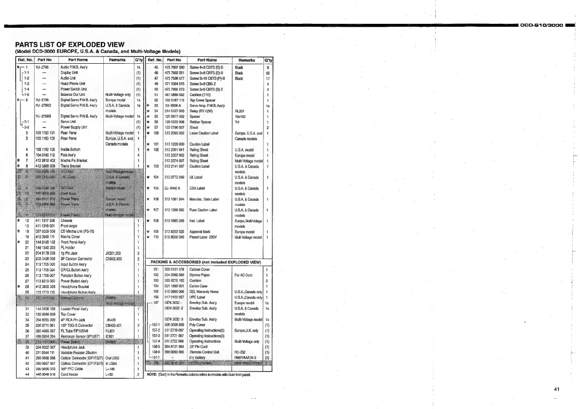 Nippon DENON DCD-S10 - Parts List of Exploded View