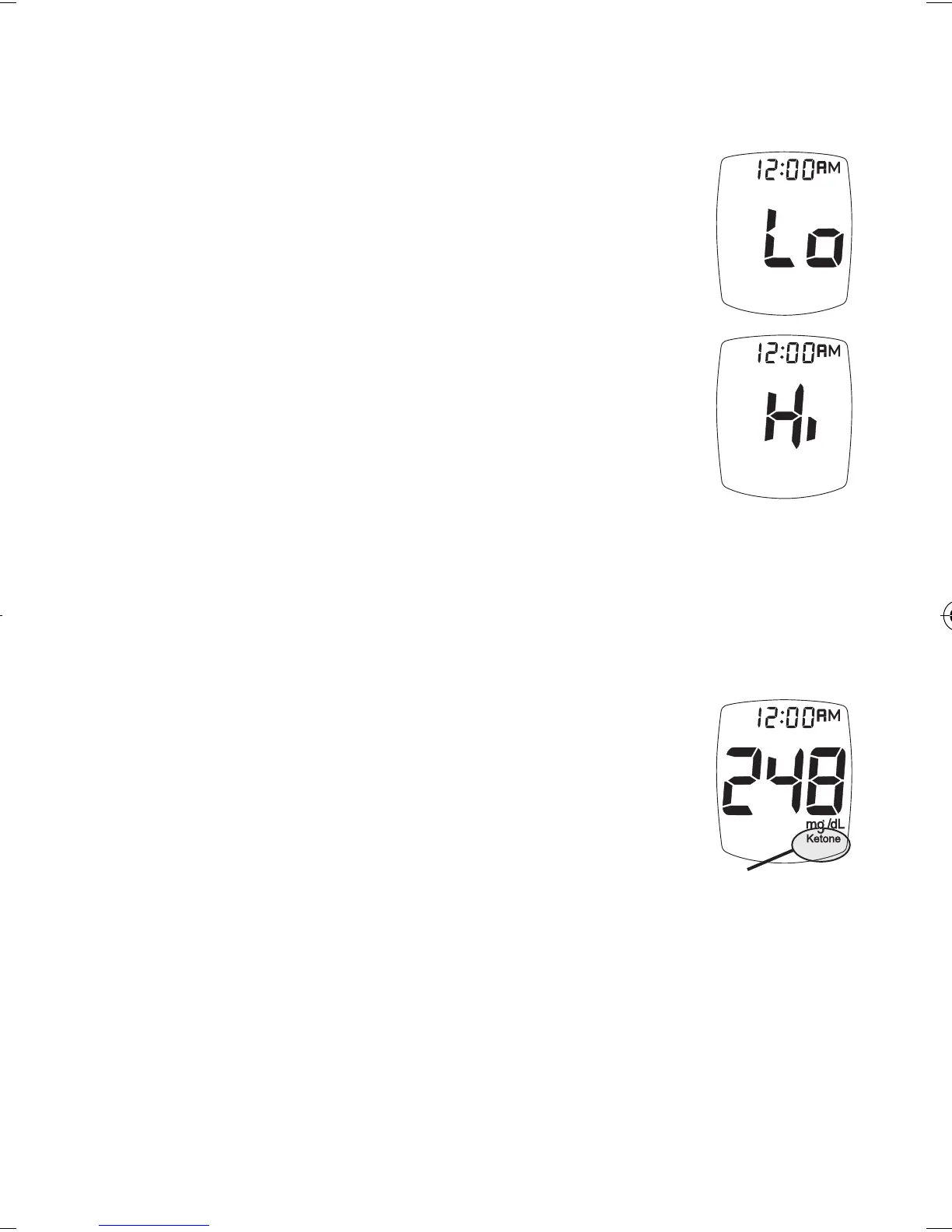 20mg/dL, la pantalla del medidor indicará “Lo”.