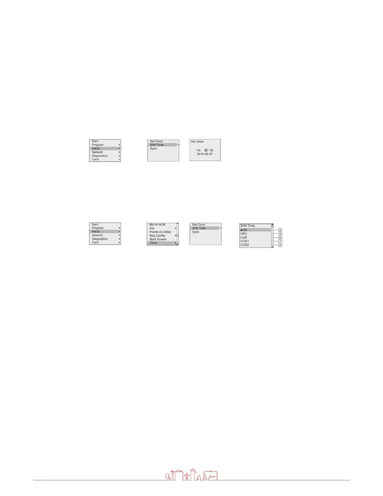 - LOGO Settings <ENTER> Setup <ENTER> Clock<ENTER>S/W Time – Select the S/W