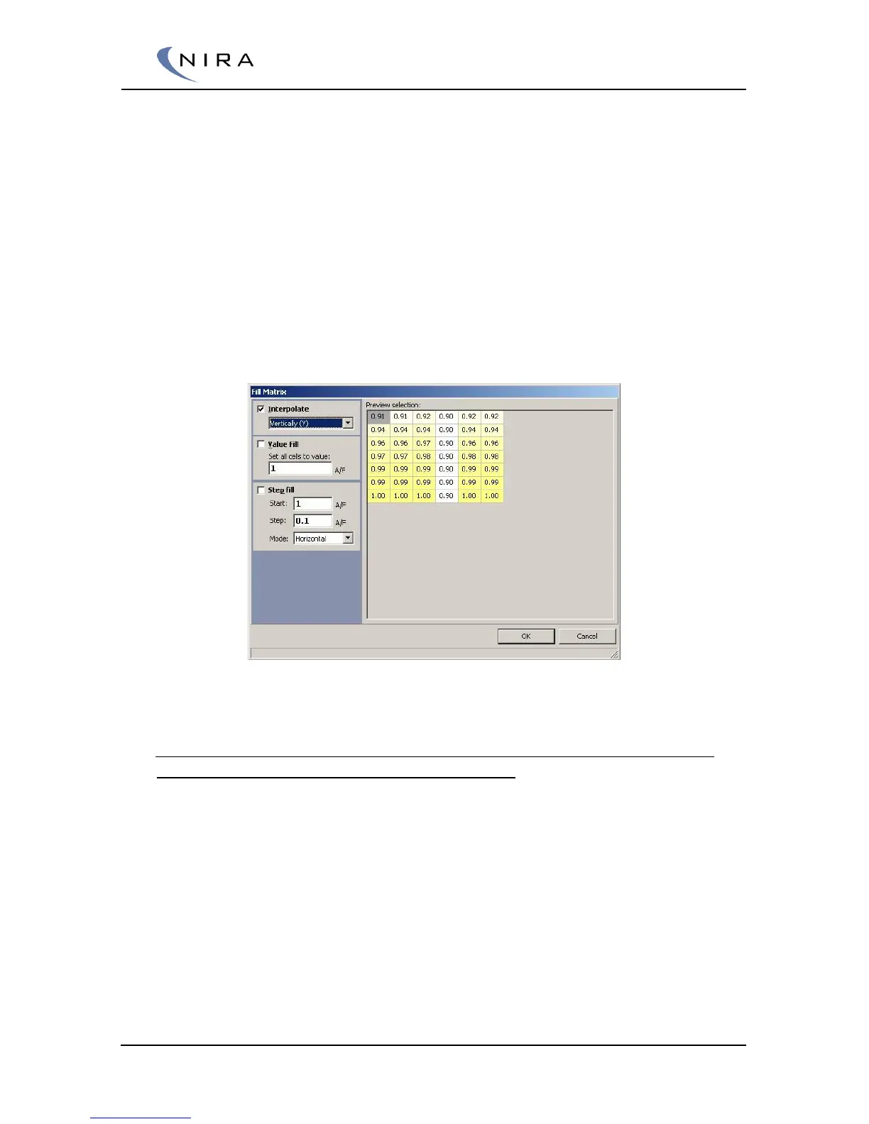 Picture 4-14: The Fill Matrix dialog box offers more advanced cell manipulation options.