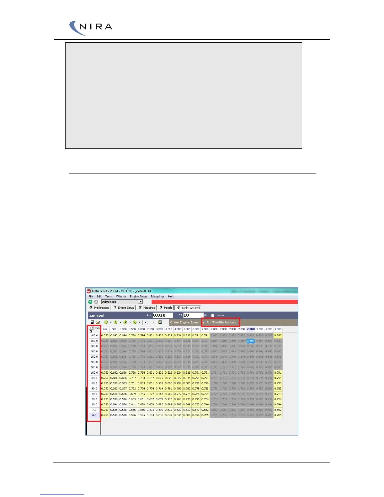 your choice. Note the Volumetric Efficiency Table must be closed and NIRA
