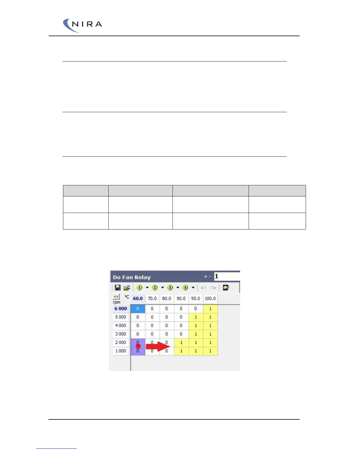 The red arrow shows direction of movement in Fan relay matrix when Coolant temp