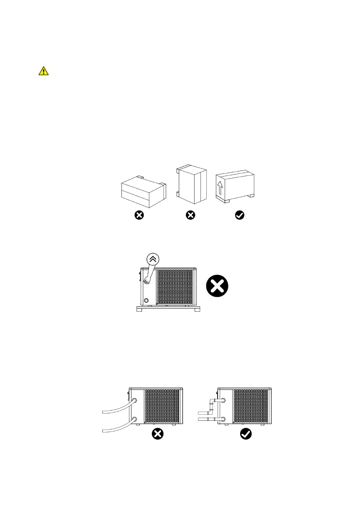 1. When storing or moving the heat pump, the heat pump should be in an upright position. Never