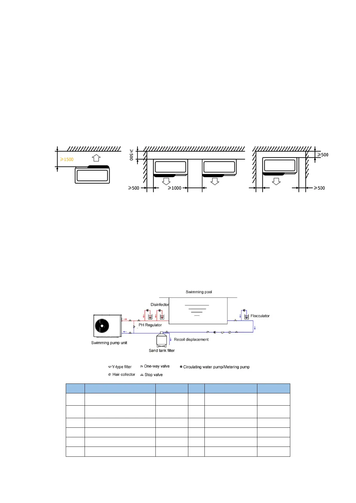 Leave 500mm (2ft) of empty space on the sides and back of the heat pump and free space for