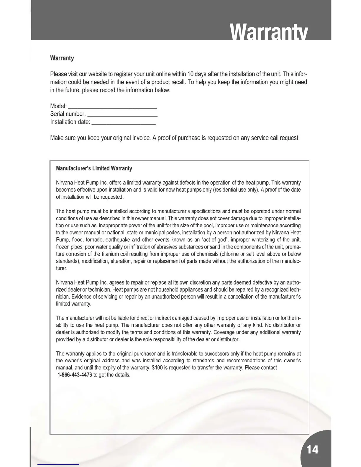 Nirvana ECO E80 - Warranty; Manufacturers Limited Warranty